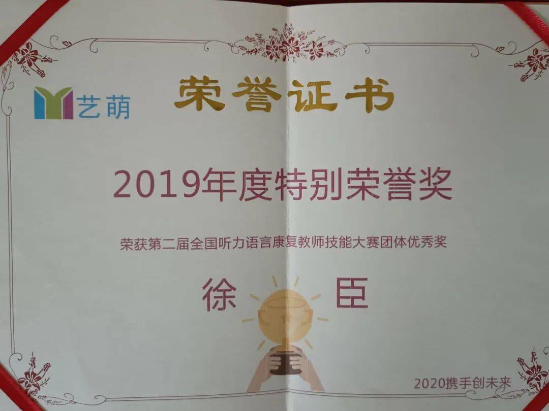 2019年荣获全国听力语言康复教师技能大赛个人单项---专业知识问答优秀奖,团体优秀奖;